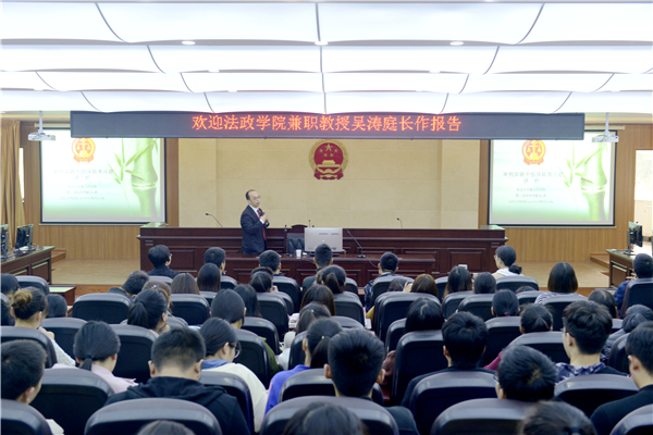 第一巡回审判庭吴涛庭长首先用一个法律问题导入讲座,吸引学生的注意力,引发学生思考,调动学生的参与积极性。接着,吴涛庭长以其专业的法律视角,深入讲解了民间借贷与担保等相关的法律问题,并结合案例分析阐述,提醒广大师生增强风险意识,树立正确的消费观念和理财观念。