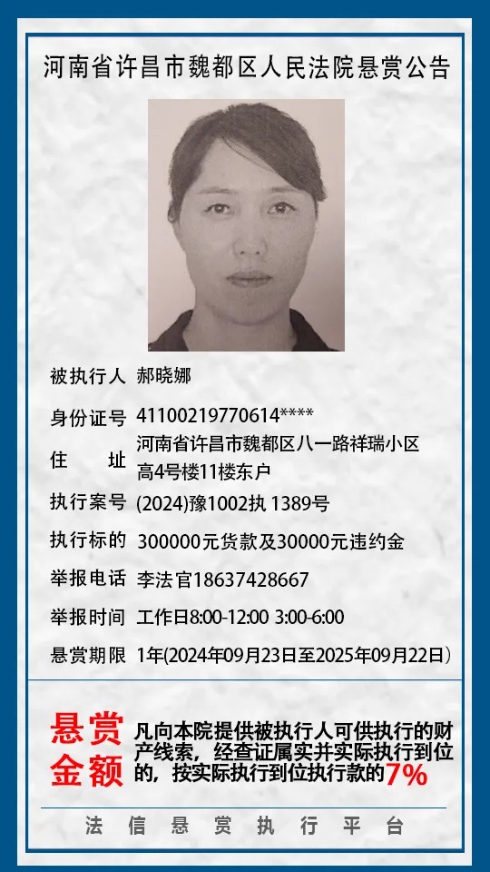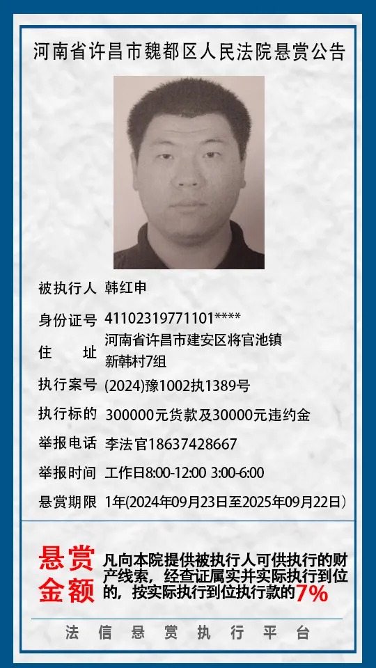举报有奖!许昌法院发布执行悬赏公告,涉22人