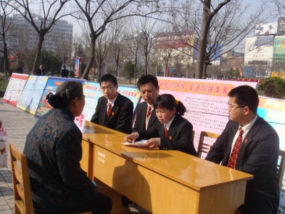 3月17日上午,许昌中院在市区春秋广场开展平安许昌建设宣传活动。此次活动紧紧围绕平安许昌建设主题,通过摆设宣传版面、现场提供法律咨询等方式,向广大群众展示全市法院去年以来在打击黑恶势力犯罪、“两抢一盗”犯罪、化解家庭邻里纠纷、保护知识产权、方便群众诉讼等方面的工作措施和取得的成效。同时,法官们还现场为过往群众提供法律咨询,解答群众提出的法律问题,传授预防和避免不法侵害的技巧。此次宣传他们共制作宣传版面10多副,现场为群众提供咨询100余人次。