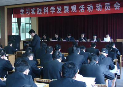 3月23日下午,许昌市中级人民法院召开深入学习科学发展观活动动员大会。市中院党组书记、院长梁开生作动员讲话,对全院深入开展学习实践科学发展观活动进行动员部署;政治部主任邢良峰宣读《开展深入学习实践科学发展观活动实施方案》和《关于成立深入学习实践科学发展观活动领导小组的通知》。会议由常务副院长张英绍主持,副院长申大超,副院长张宝生,纪检组长宋军文,政治部主任邢良峰出席会议。许昌中级法院机关全体干警参加了大会。