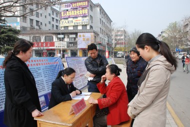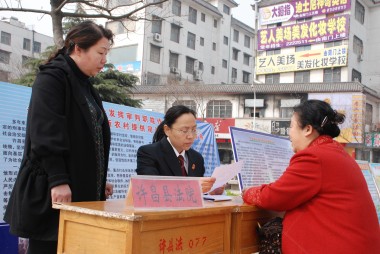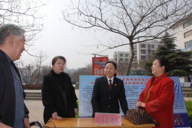 3月份是许昌市委政法委组织开展的平安建设宣传月。3月31号,许昌市公、检、法、司等单位在春秋广场等人流密集场所与群众进行宣传互动。通过制作宣传版面、面对面沟通等多种形式向市民进行普法宣传。图为许昌县法院法官对市民提出来的法律问题进行耐心讲解。