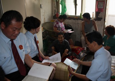 为营造良好的法治环境,提高辖区群众的法律意识,河南省许昌市魏都区人民法院“以人民法官为人民活动“为锲机,深入开展法官进社区、进家庭、进企业的三进活动,法官通过实地开庭,剖析案例,解惑释法等方法,切实把方便送到基层,服务人民。图为6月1日,法官来到下肢瘫痪的被告郭小德家开庭。最终该案以调解结案
